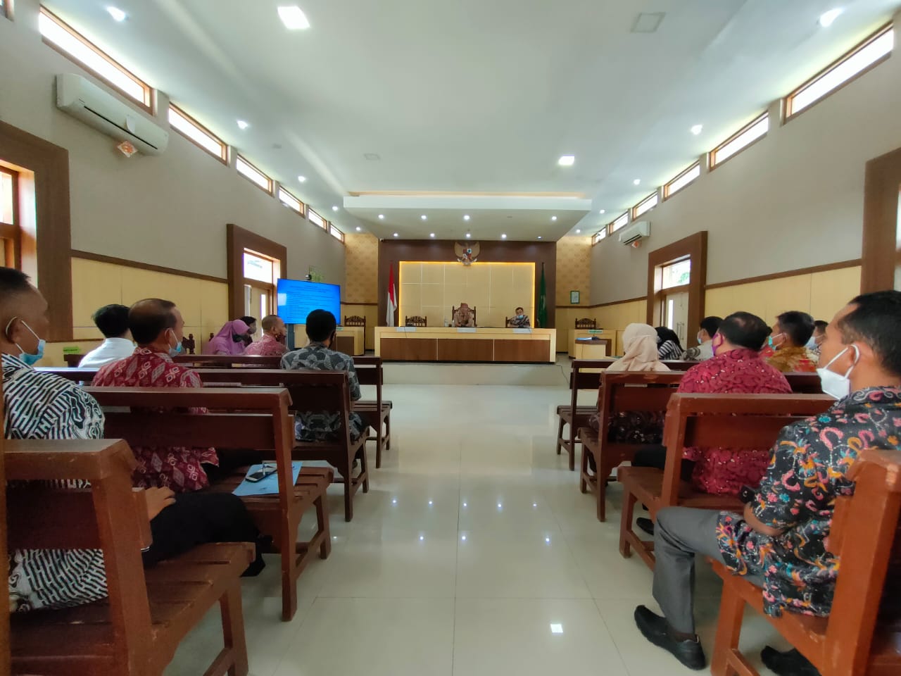 Acara Pembinaan dan Evaluasi Kinerja Bulan Februari 2021 di ruang Sidang Utama, hadir pada acara tersebut adalah Bapak Ketua PN Pamekasan, para Hakim, Sekretaris, Panitera dan para Kasub. Bag. Selain rapat evaluasi ada pembinaan dari Bapak Ketua PN Pamekasan hasil Bimtek dari KPT di Malang dan ada pemberian Reward untuk Tim Kreatif PN Pamekasan karena mengikuti lomba Vlog HUT IKAHI ke 68.