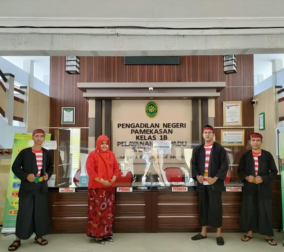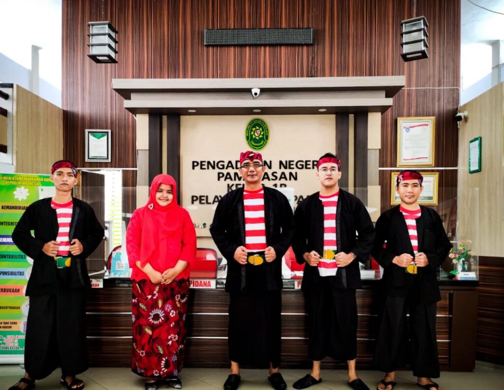 Humas PN Pamekasan, dalam rangka memeringati hari jadi Pamekasan yang ke 491 Aparatur PN Pamekasan dalam memberikan pelayanan memakai pakaian adat Madura, yang laki-laki memakai Pesa’ Gombor dan yang perempuan pakaian Marlena. Madura Oke Banget #PulauGaramMadura