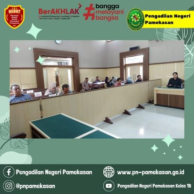 Rapat Pembinaan Petugas PTSP Oleh Ketua Pengadilan Negeri Pamekasan Bapak Dr.MOHAMMAD AMRULLAH, S.H., M.H. dan Wakil Ketua Bapak PURWANTA, S.H., M.H. yang turut mengikuti Hakim, Panitera, Sekretaris, Para Panitera muda, Kasubag Umum dan keuangan dan seluruh Petug