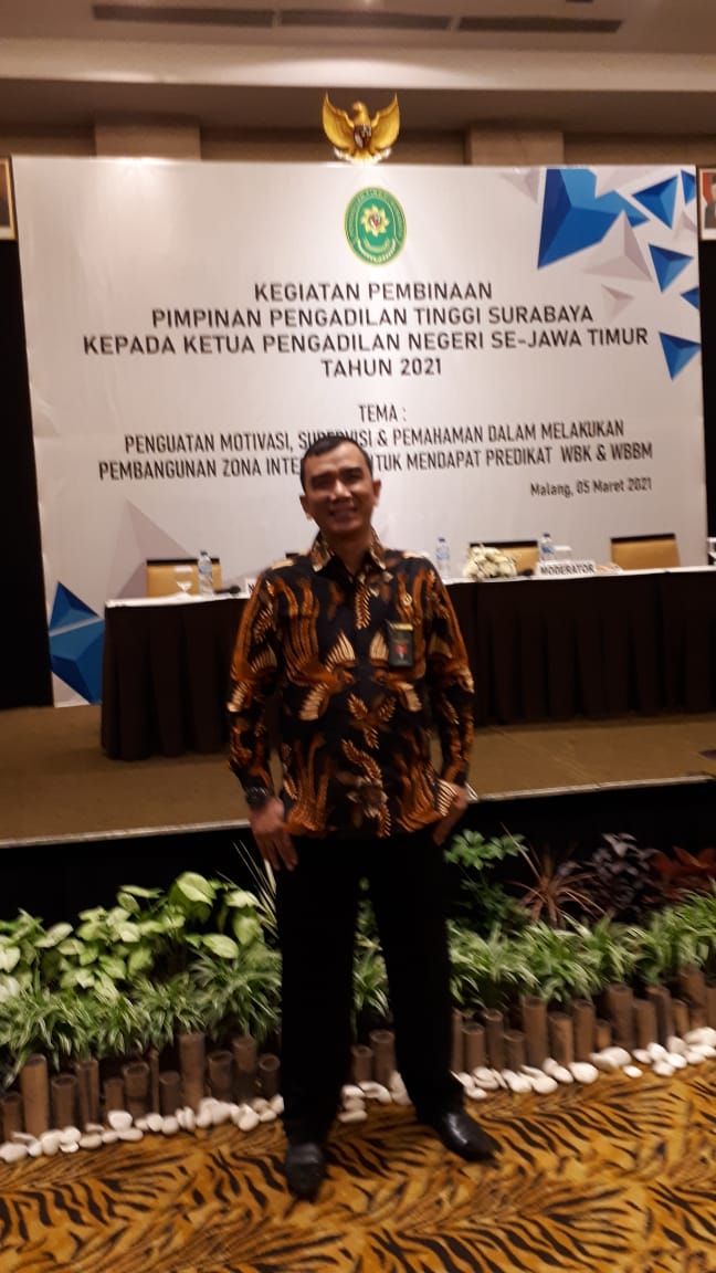 Bertempat di hotel Santika Premiere Malang, hari Jum’at tanggal 5 Maret 2021 diadakan acara”Pembinaan Bagi Ketua Pengadilan Negeri dan Pengadilan pada Ex. Karesidenan Malang Tahun 2021″, dalam rangka penguatan motovasi, supervisi, dan pemahaman dalam melakukan pembangunan zona integritas untuk dapat memperoleh predikat WBK dan WBBM, pada acara tersebut dibuka dan dipimpin sekaligus menjadi narasumber bapak Ketua PT Surabaya yang terhormat Bp. Dr. H. Herri Swantoro, S.H., dan didampingi oleh Wakil Ketua PT Surabaya yang terhormat Dr. H. Siswandriyono, S.H., serta Hakim Tinggi yg ditunjuk sebagai Narasumber, Panitera PT Surabaya Bp. H. Tavip Dwiyatmiko, S.H., Serta Sekretaris PT Surabaya Bp. Respationo Wage Suwardi, S.H., MM. Pada acara tersebut diikuti 35 KPN se-Wilayah PT Surabaya, Panitera, Sekretaris dan Operator IT PN se-Ex Karesidenan Malang.