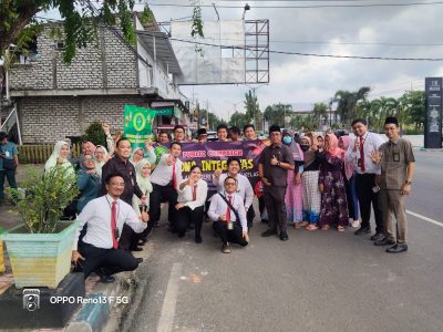 Pamekasan, Selasa 18 Maret 2025. Bertempat di depan Kantor Pengadilan Negeri Pamekasan, Ketua Pengadilan Negeri Pamekasan, Bapak Rahmat Sanjaya, S.H., M.H., bersama Wakil Ketua, Para Hakim, Para Cakim dan seluruh ASN Pengadilan Negeri Pamekasan serta Ibu-ibu Dharma Yukti Karini Cabang Pamekasan melaksanakan Public Campaign Anti Gratifikasi dan Bagi-bagi Takjil kepada pengguna jalan yang melintas di jalan depan kantor Pengadilan Negeri Pamekasan. Kegiatan ini bertujuan untuk mensosialisasikan kepada masyarakat terkait anti korupsi dan bersih melayani untuk membangun zona integritas menuju wilayah bebas korupsi. Public campaign tersebut juga dijadikan momen bagi-bagi takjil kepada masyarakat yang melintas.