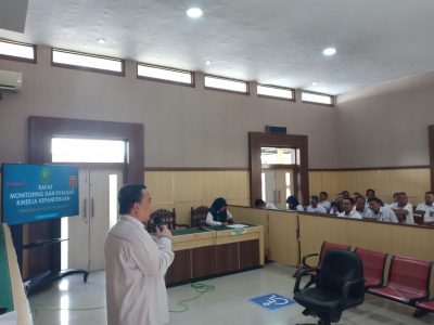 Pamekasan, Senin tanggal 14 Juli 2025. Bertempat di Ruang Sidang Garuda, dilaksanakan Rapat Monitoring dan Evaluasi Kinerja Kepaniteraan. Rapat dipimpin oleh Ketua Pengadilan Negeri, Bapak Rahmat Sanjaya, S.H., M.H., didampingi Wakil Ketua, Panitera, Para Panitera Pengganti, Jurusita/Jurusita Pengganti dan staf kepaniteraan. Rapat tersebut bertujuan untuk meningkatkan kualitas pelayanan dan integritas pada Pengadilan Negeri Pamekasan.