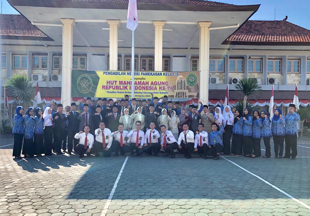 Pengadilan Negeri Pamekasan mengadakan upacara dalam rangka memperingati Hari Ulang Tahun ke-74 Mahkamah Agung Republik Indonesia, pada hari Senin, tanggal 19 Agustus 2019 bersama ibu-ibu Dharmayukti Karini melaksanakan upacara bendera di halaman Pengadilan Negeri Pamekasan